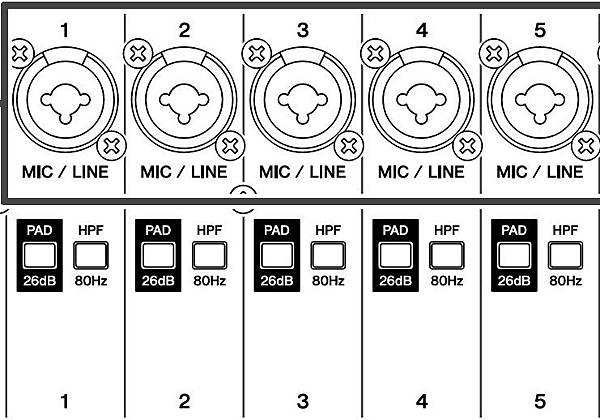 簡單說:PAD鍵,只會使用在LINE訊號 ,麥克風訊號已經夠小了,不太可能會再去衰減麥克風訊號